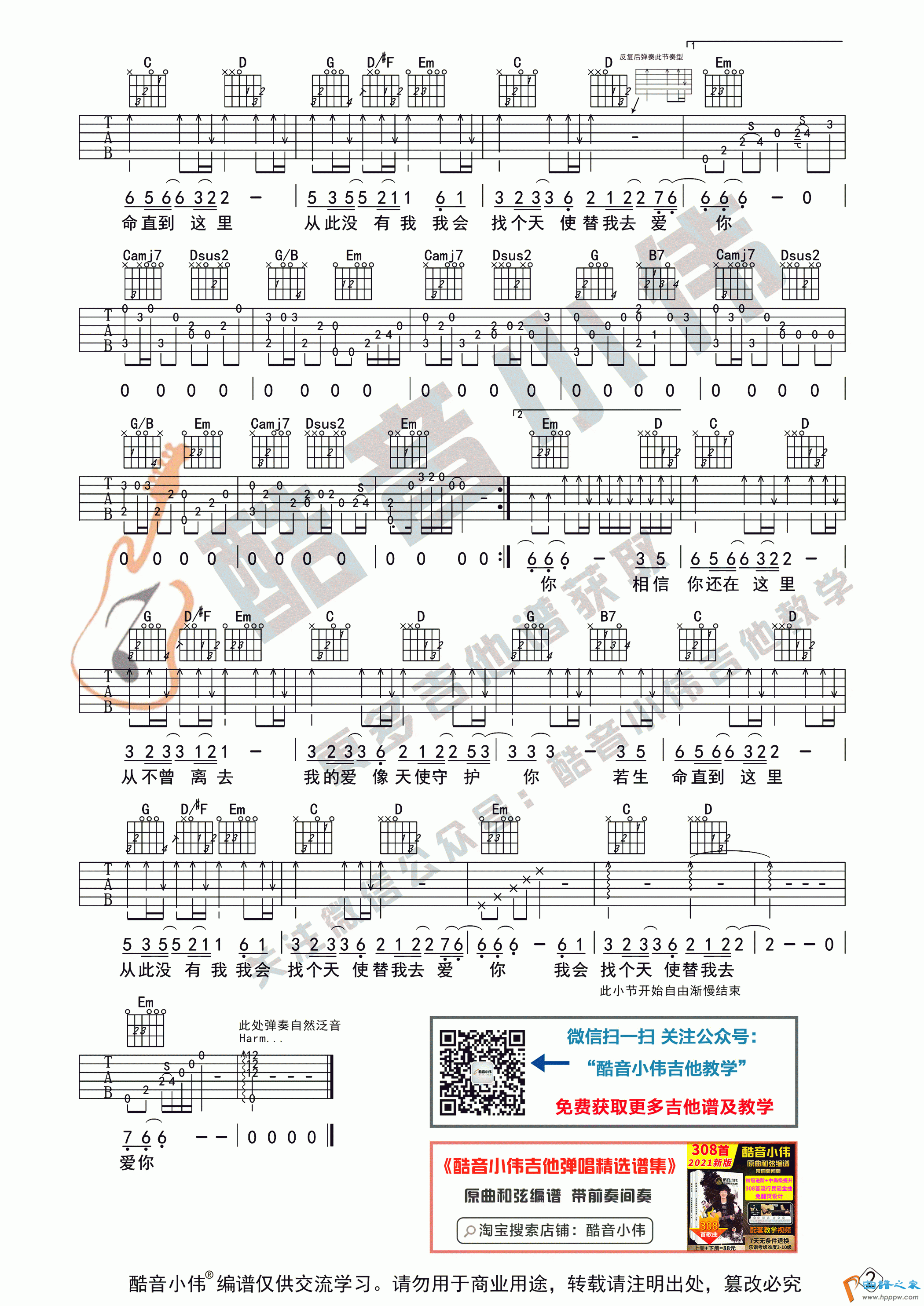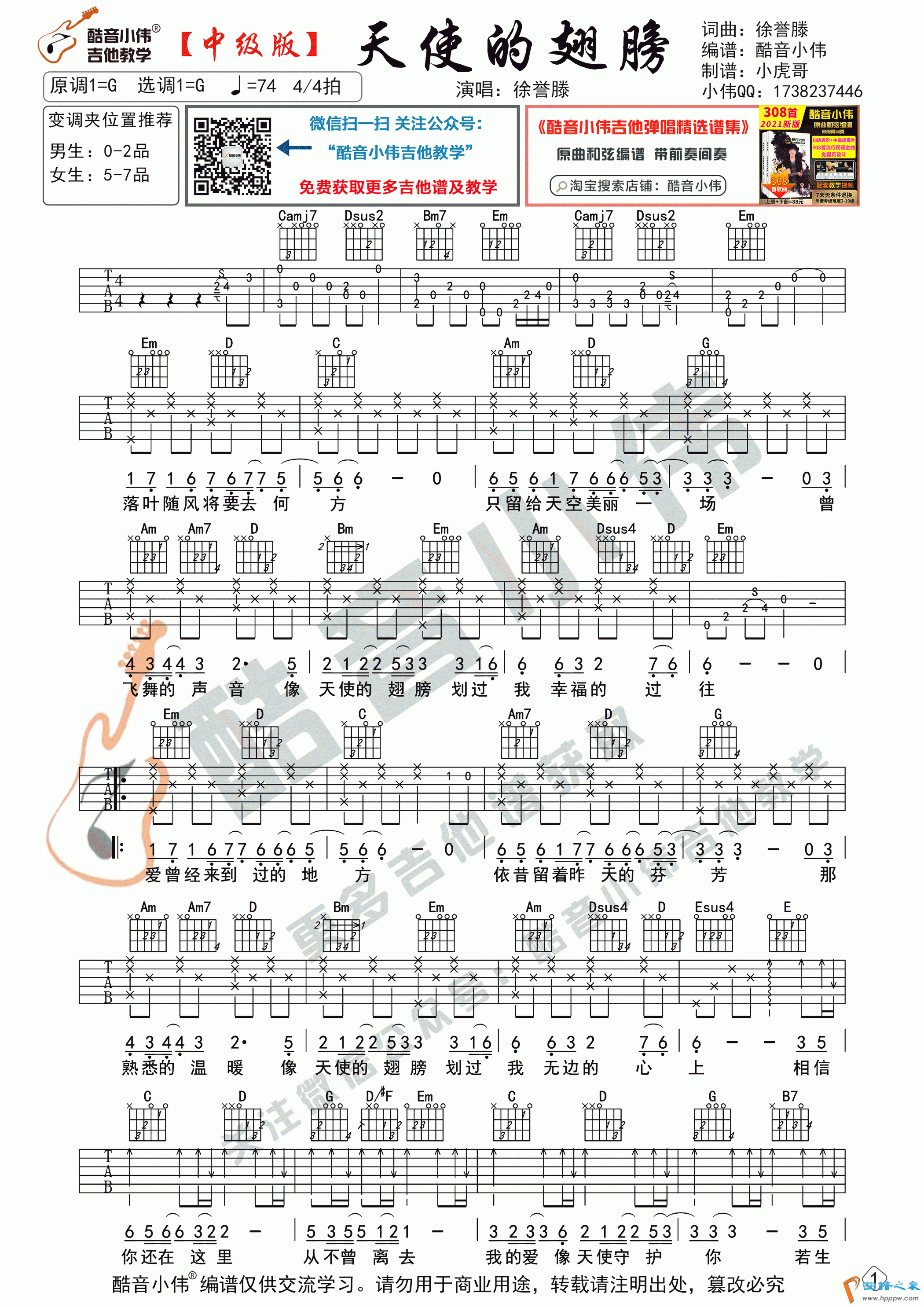 《天使的翅膀》吉他谱中级版 (酷音小伟吉他教学)