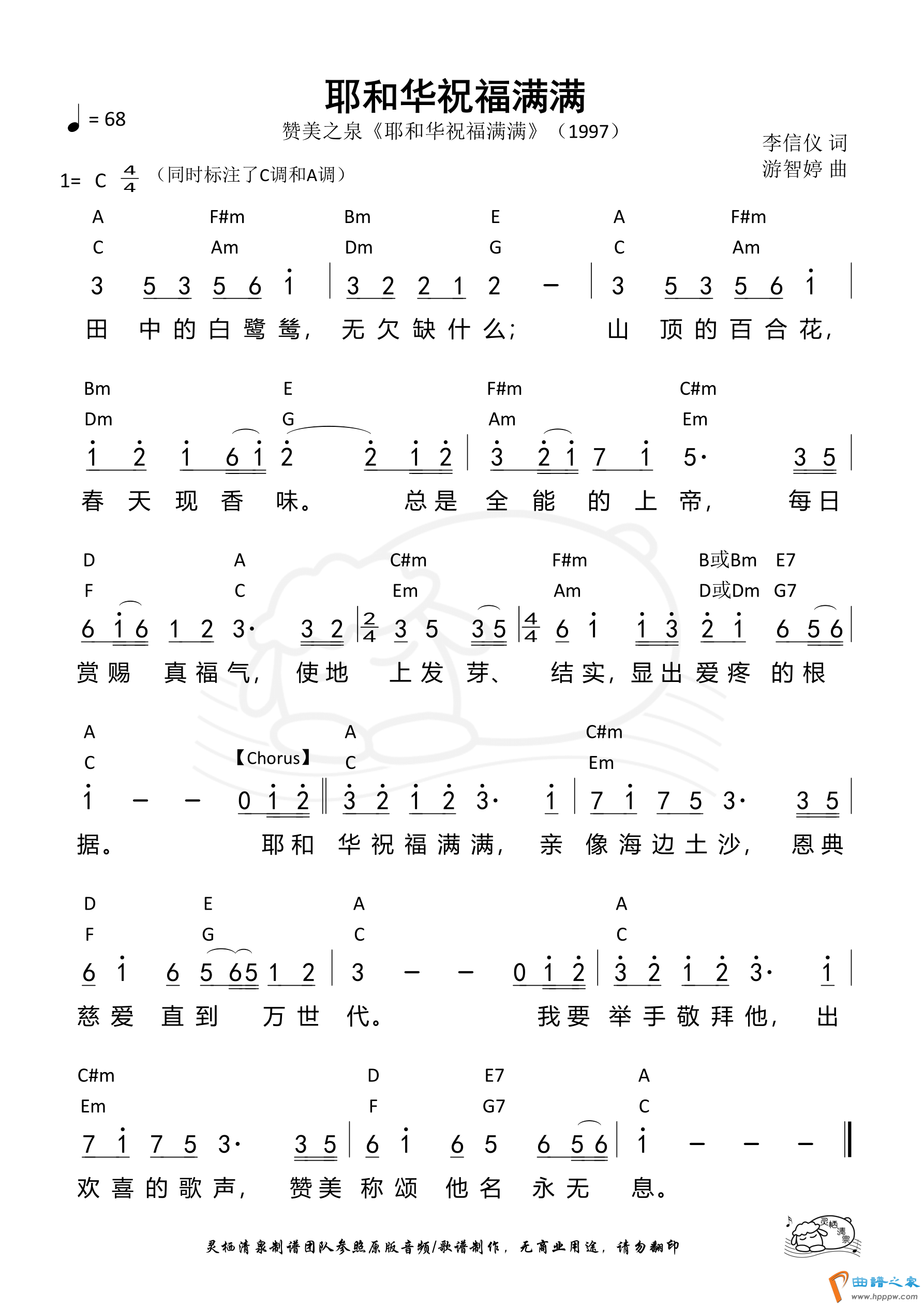 第16首 -耶和华祝福满满 和弦简谱