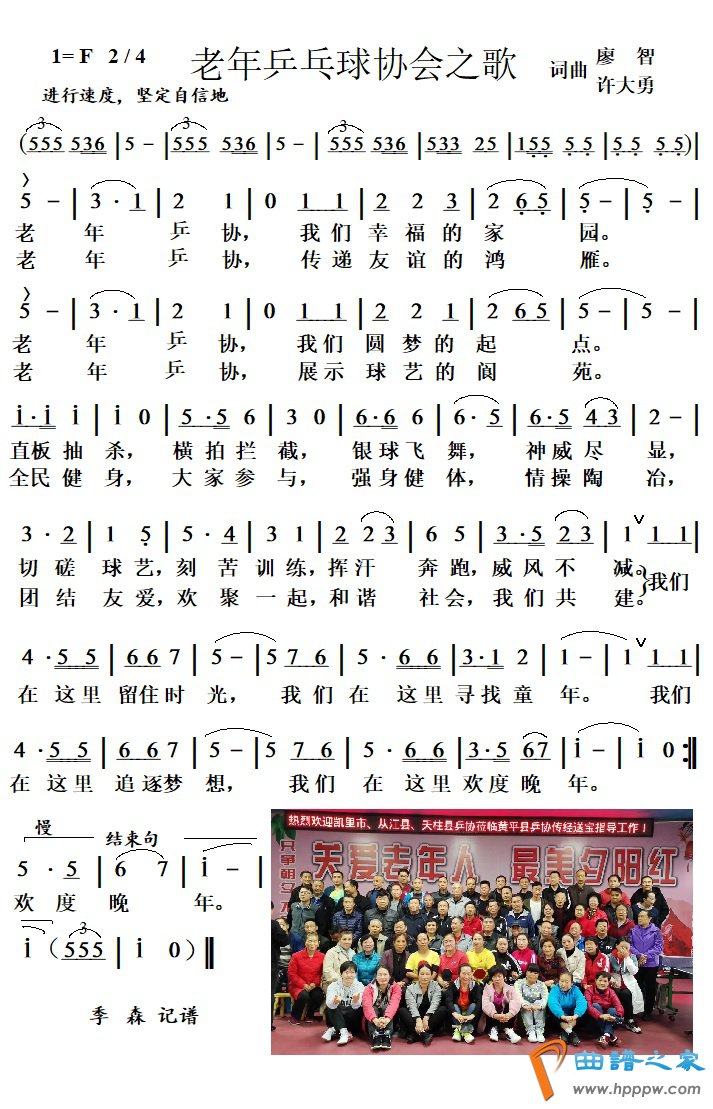 老年乒乓球协会之歌