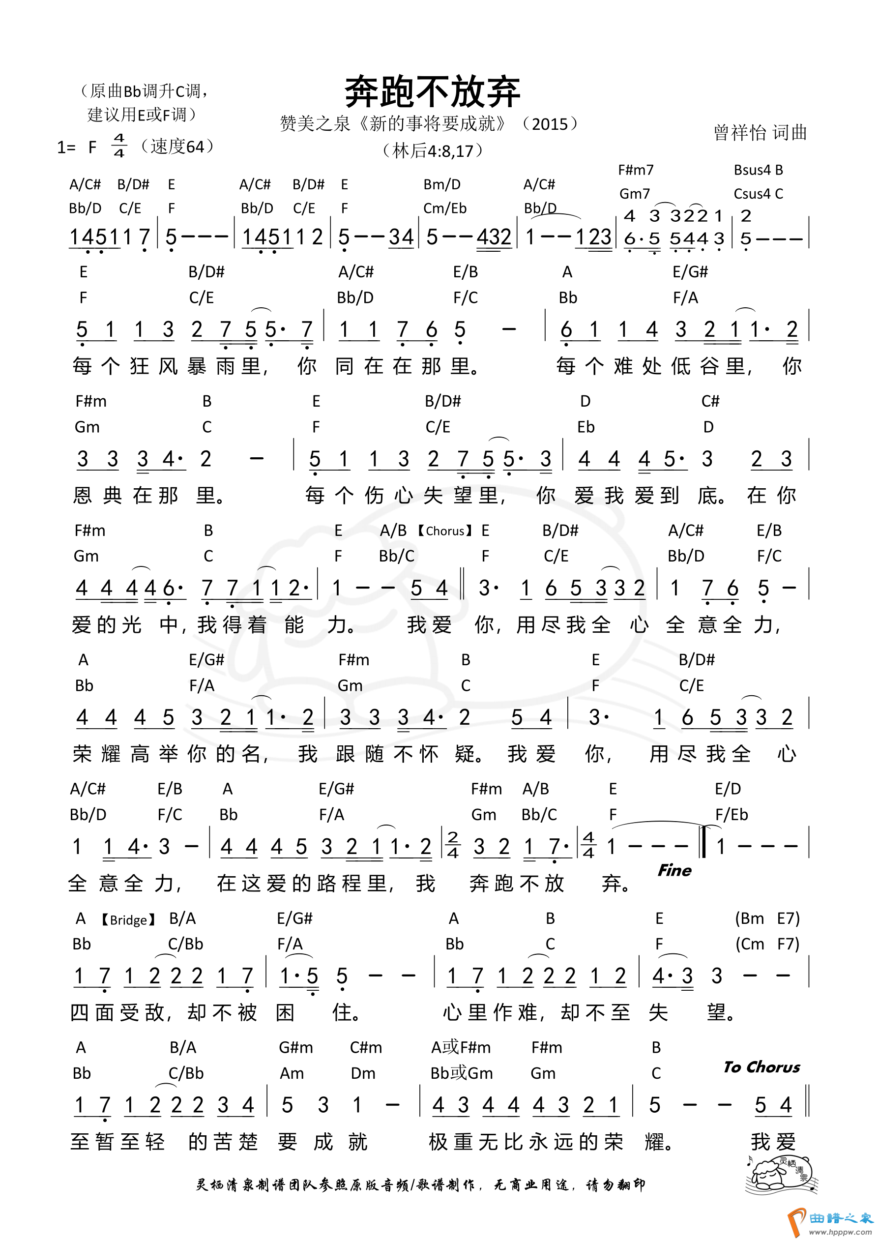 - 第339首 -奔跑不放弃(简版E+F调) 和弦简谱