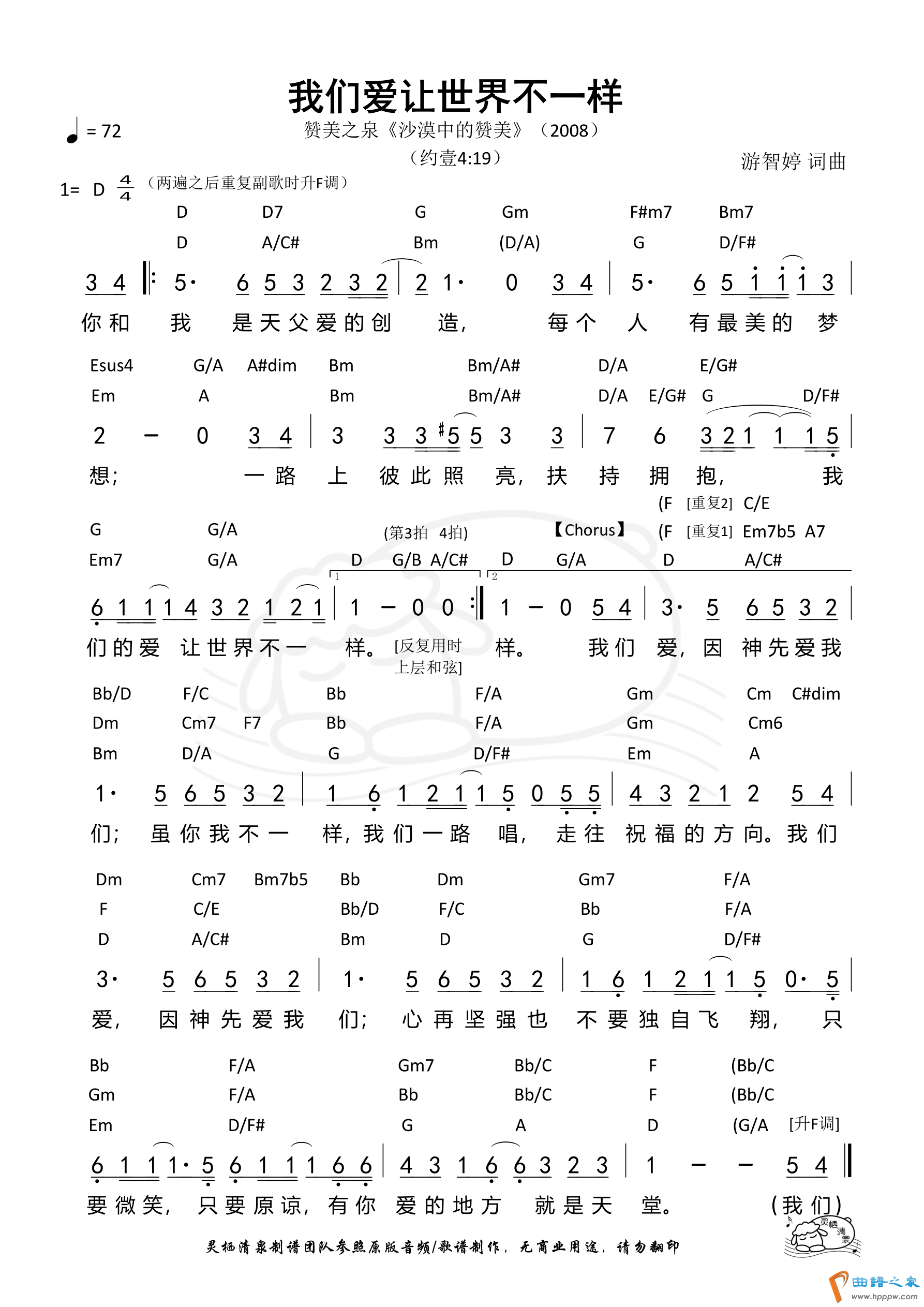 第202首 -我们爱让世界不一样(原版原调) 和弦简谱