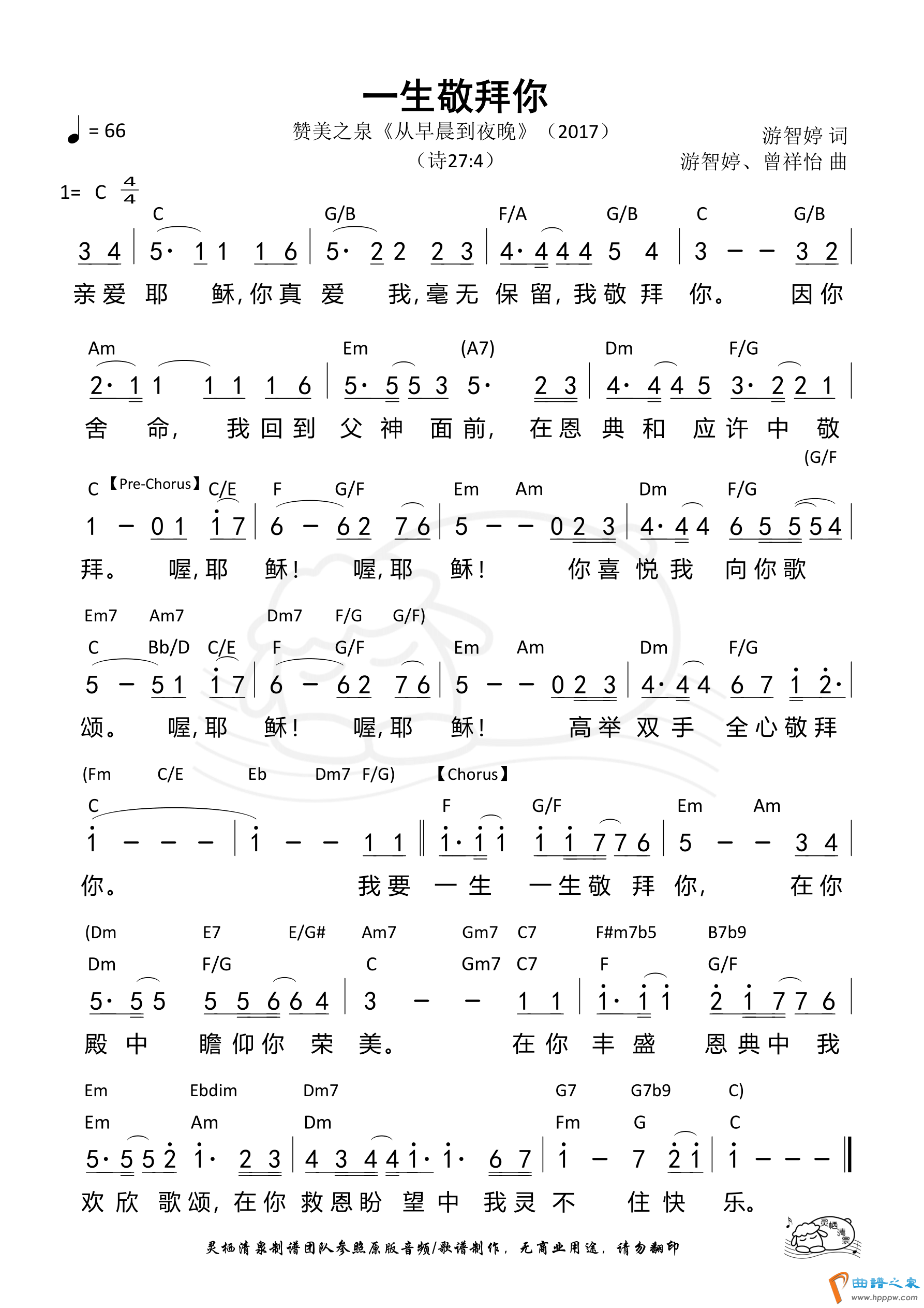 - 第383首 -一生敬拜你(赞美之泉)(简版) 和弦简谱