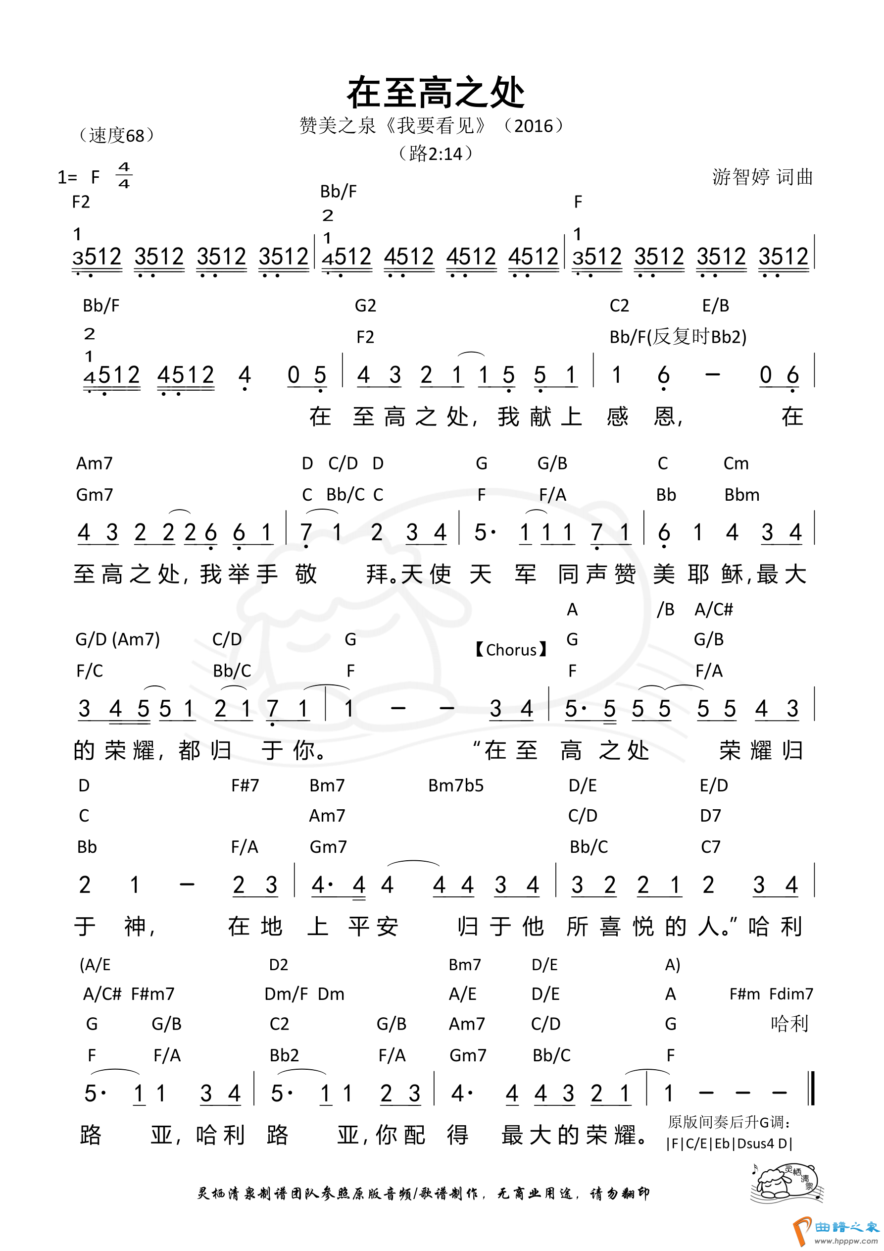 第372首 -在至高之处(原版) 和弦简谱