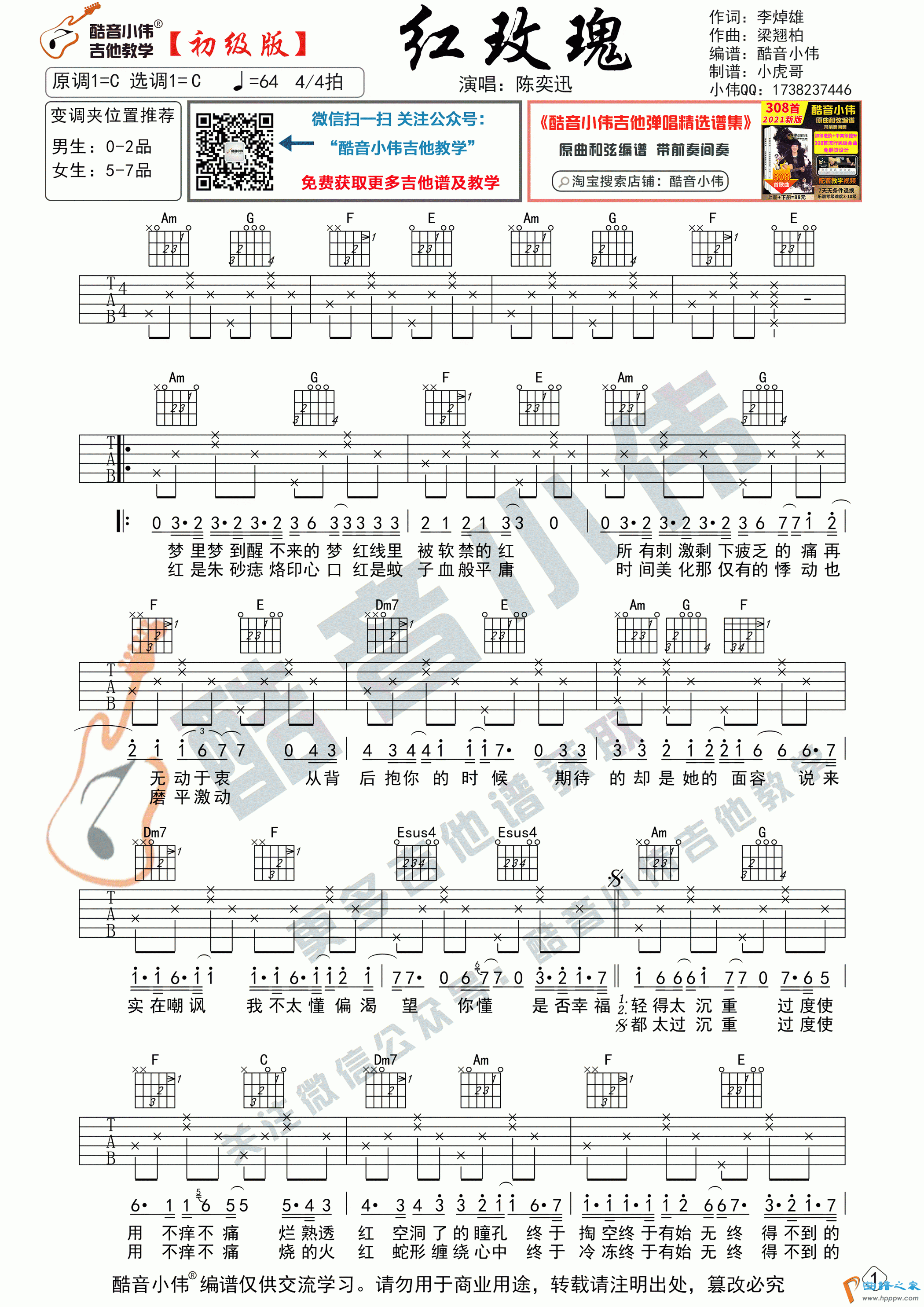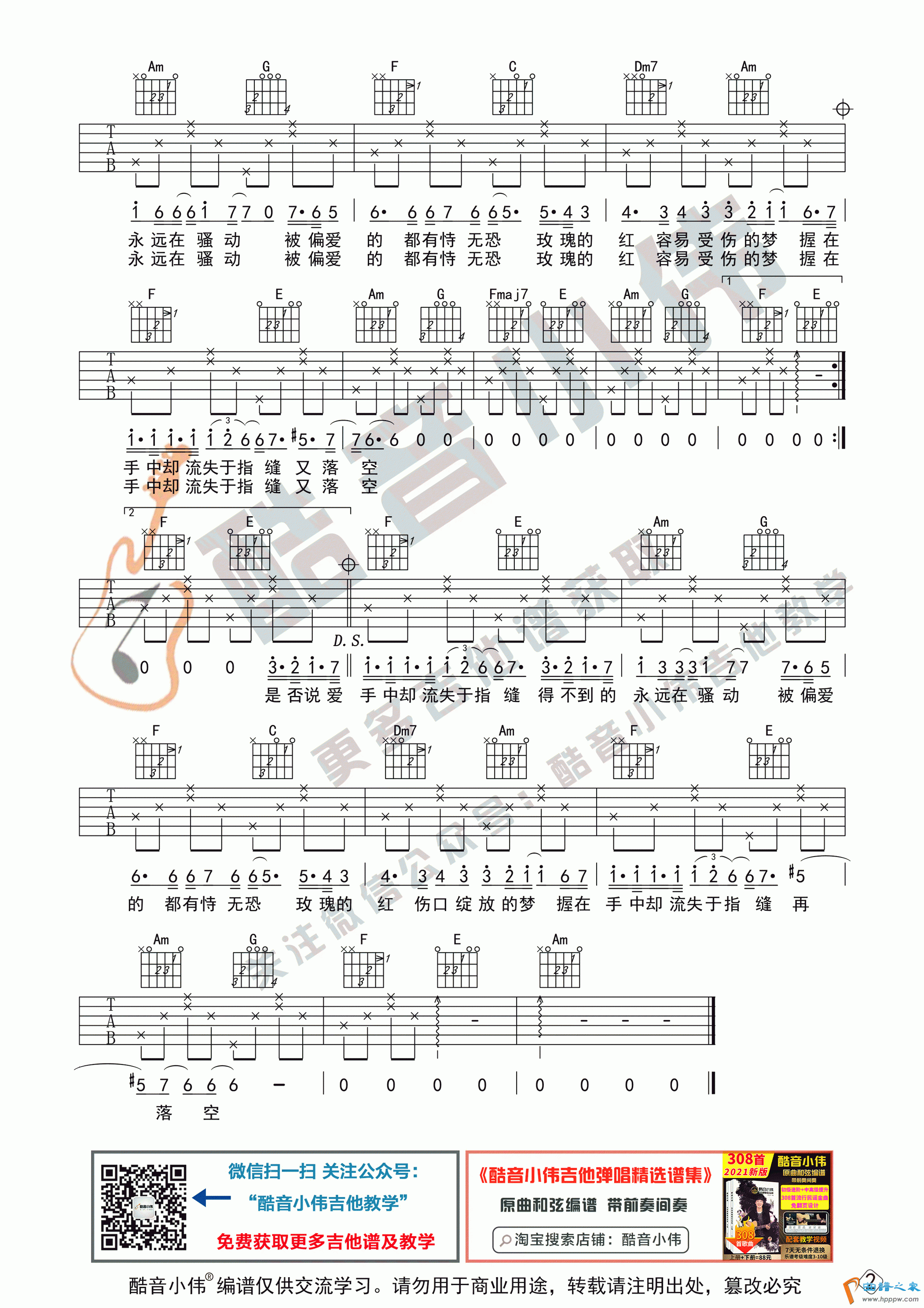 《红玫瑰》吉他谱初级版(酷音小伟吉他教学)