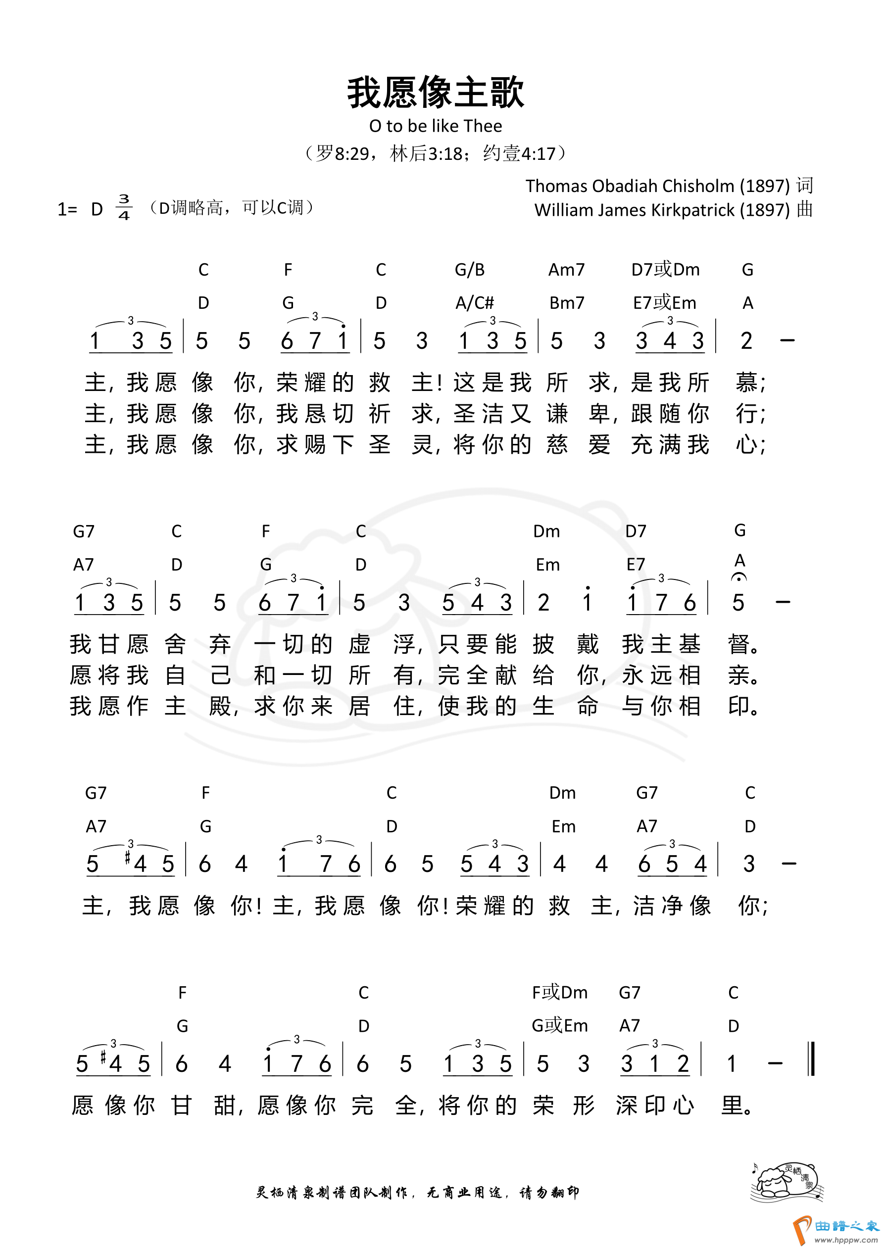 第138首 -我愿像主歌 / 我愿象主歌 / 主我愿像你 和弦简谱