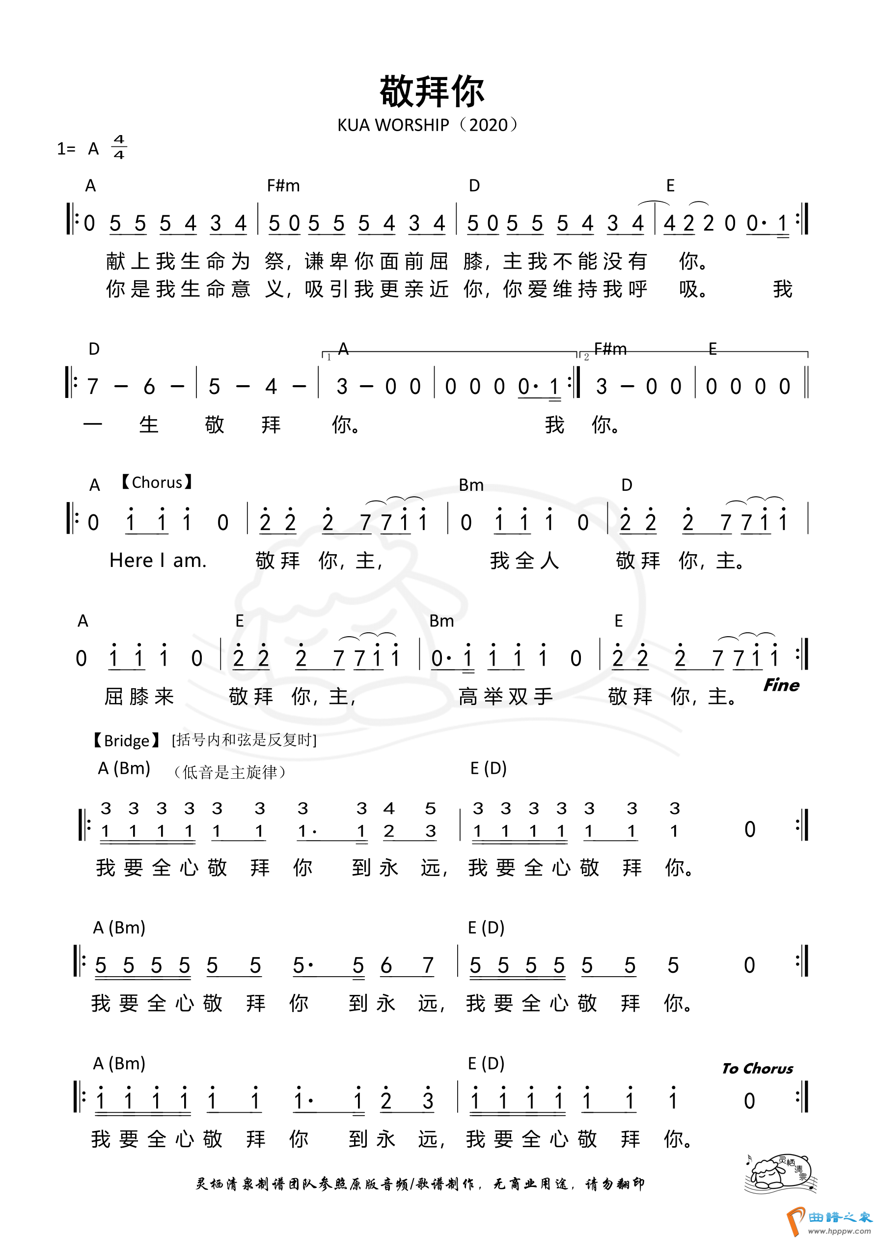第858首 -敬拜你(KUA)和弦简谱