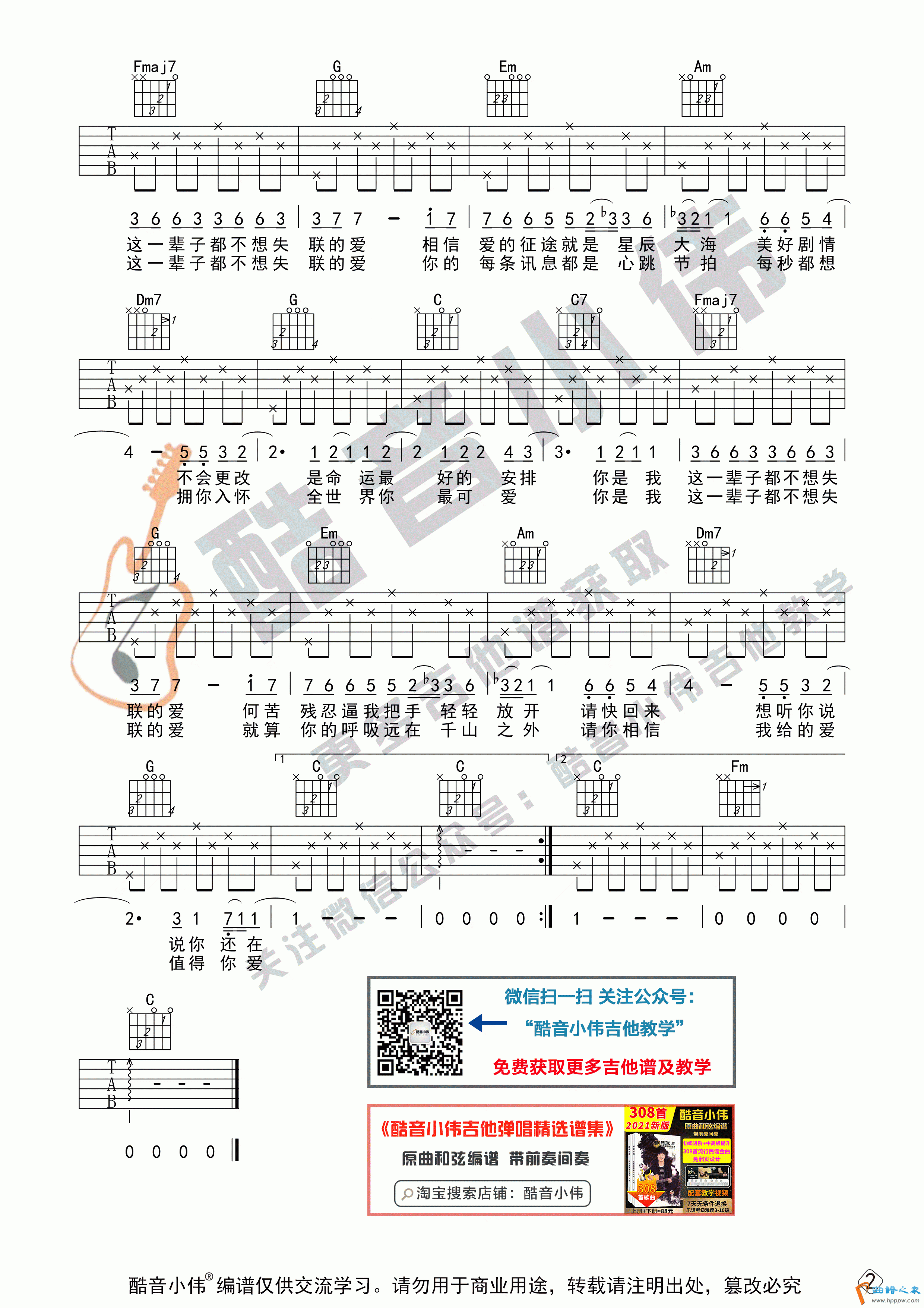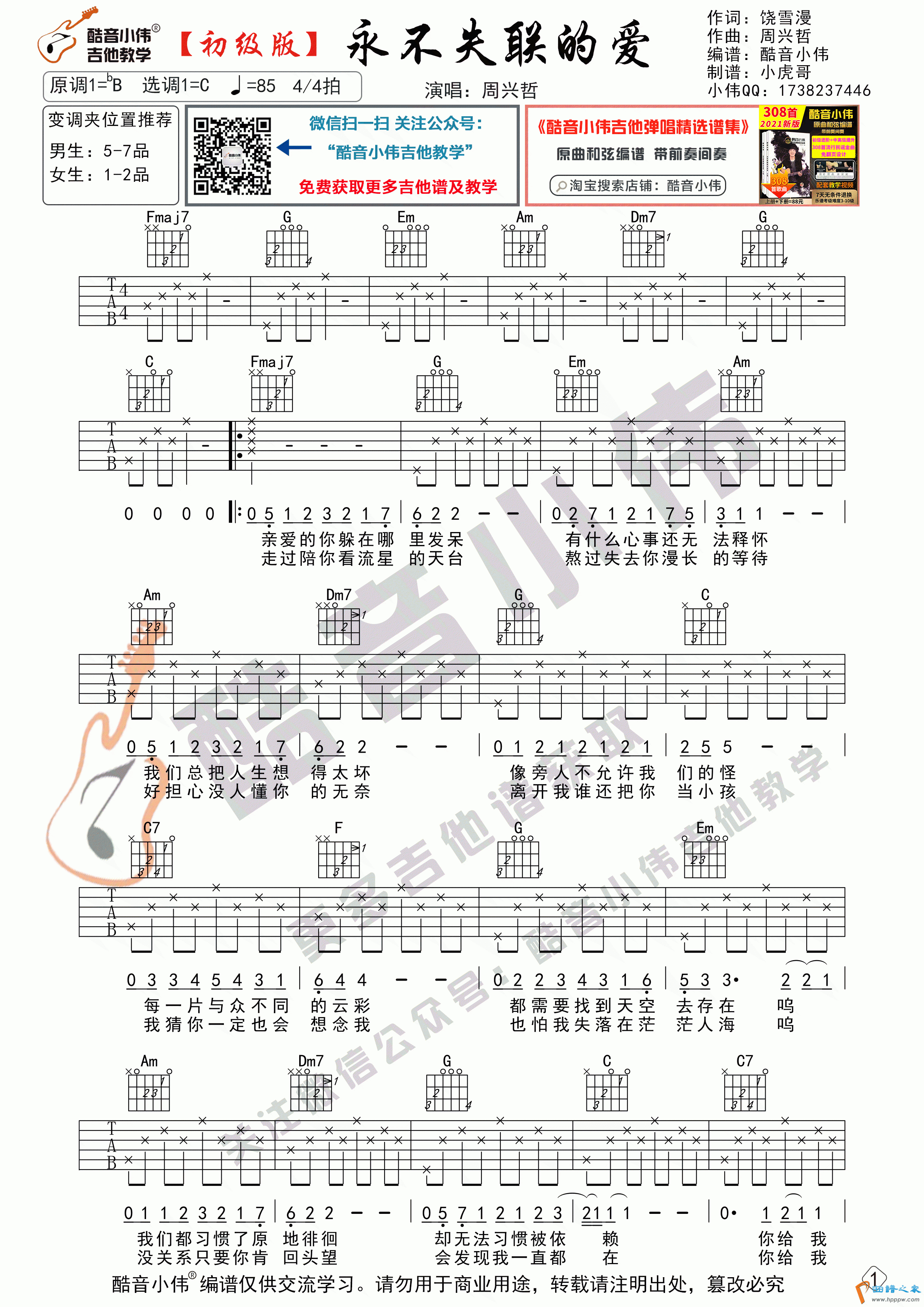 《永不失联的爱》周兴哲吉他谱初级版(酷音小伟吉他教学)
