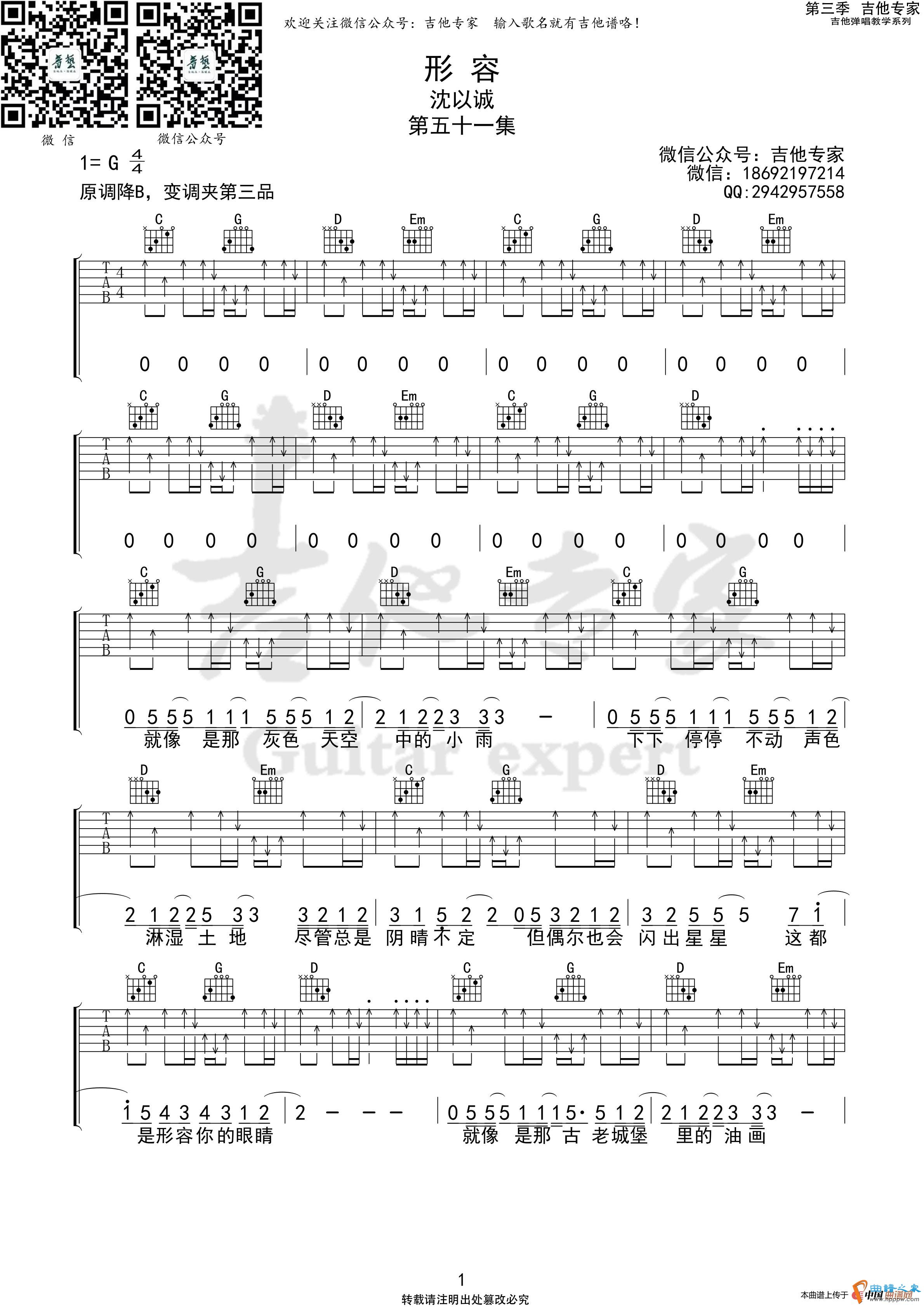 形容 吉他谱