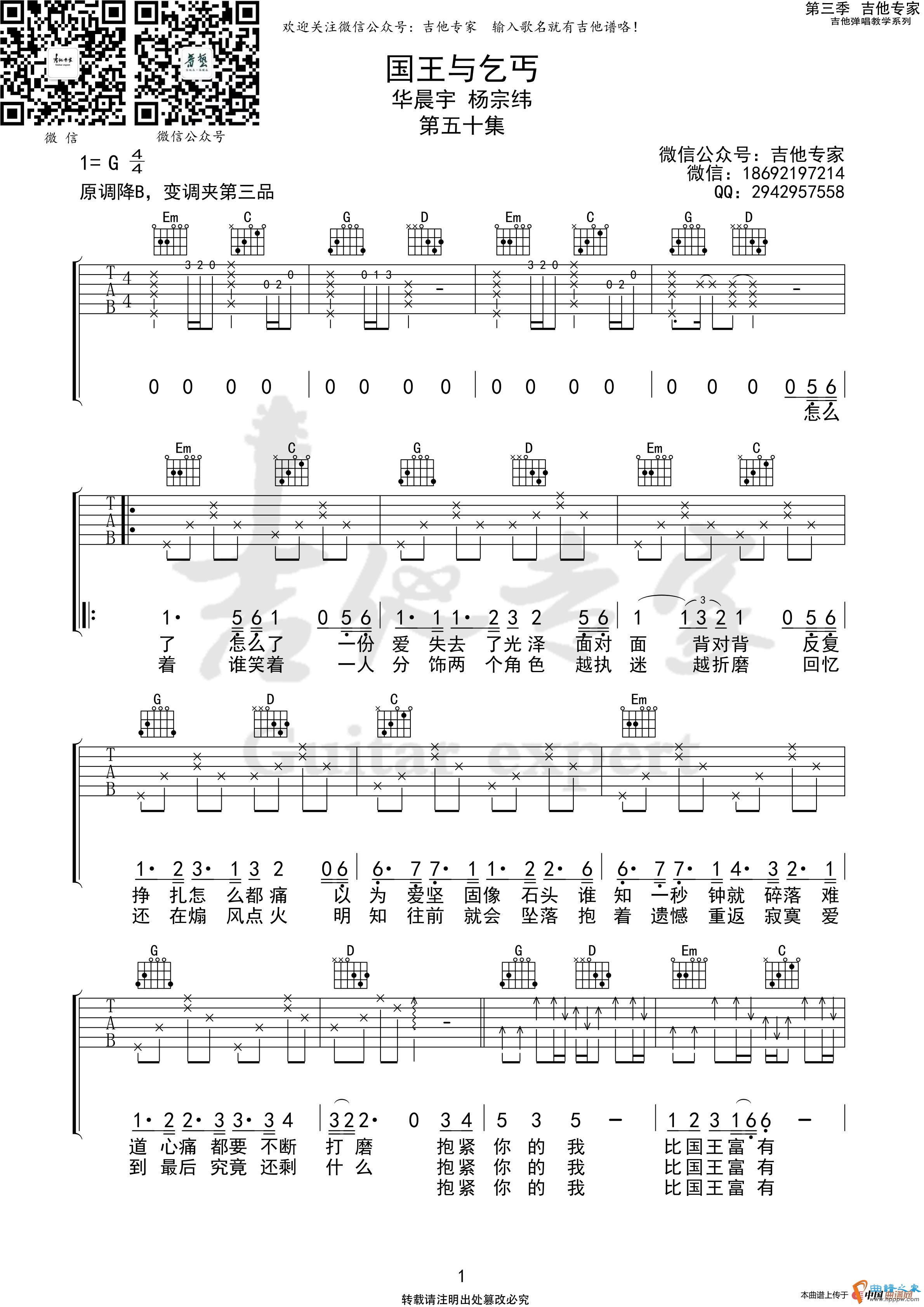 国王与乞丐 吉他谱
