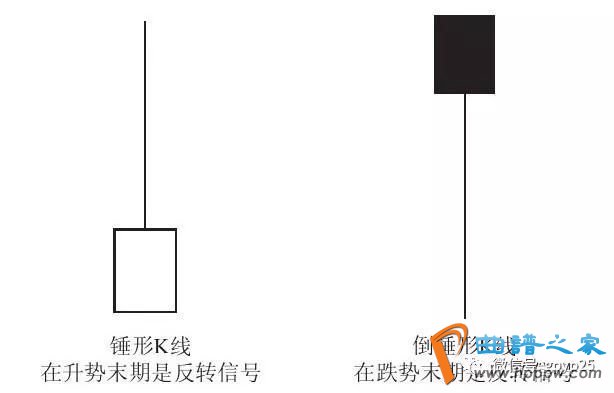 2:锤形K线所示,锤形K线是一种现象的比喻,由于此类K线拥有较额表的样式,看起来像是一个锤子,于是得此名称。