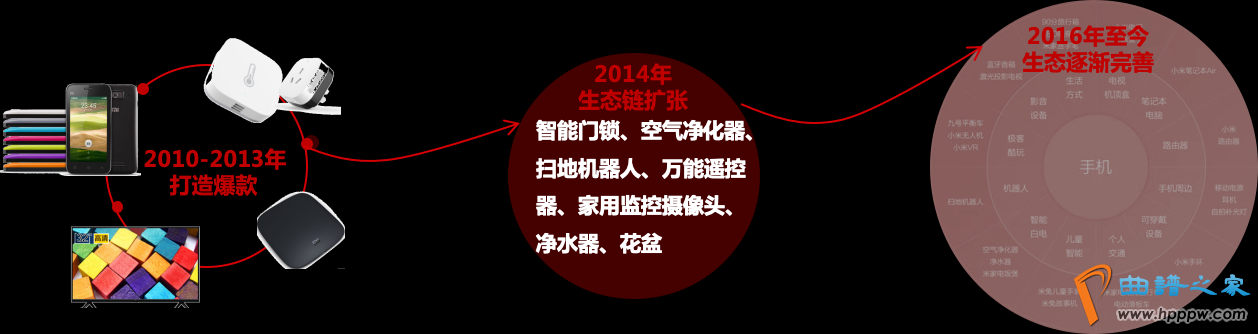 以功夫为线索,找到企业营销的里程碑变乱,发觉营收目标蜕化的背后是产物矩阵的蜕化。产物矩阵的蜕化又可能追溯到为搭筑生态而举行的内部研发政策安排、表部收并购行径。以是,发轫获得2010-2016年光阴幼米生态的营收形式安排闭键资历3个阶段:爆款扩范畴-利润款带营收-大数据帮力深耕。
