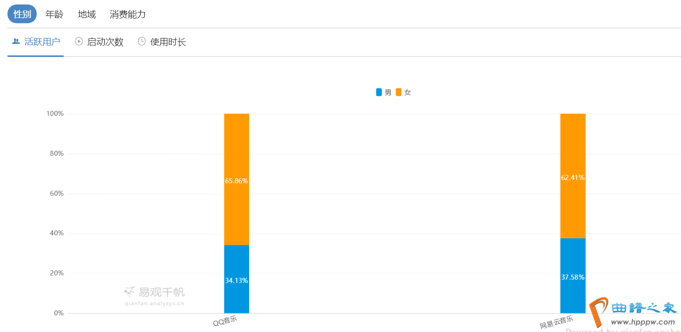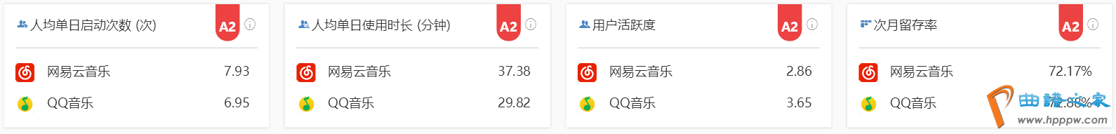 上面枚举了和网易云音笑16年12月到17年2月三个月的日均数据,正在日均活动人数、日均启动次数和日均利用时长三项数据上,因为QQ目前仍是具有更强大的用户群体,以是三项数据三个月都是周密当先网易云音笑的,可是正在同比增进率的目标上彀易云音笑正在三项数据每个月都赶过。由此可见网易云音笑近三个月进展速率曾经赶过,用户群正正在加快强壮而且其用户有优越的老实度。