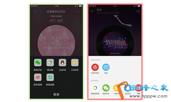 点击“分享”按钮后,光碟休止动弹,网易云音笑点击“分享”后连续唱片连续动弹,可是铲除分享后唱片转回原始处所,两款产物正在此细节解决都有抑扬感,不贯通。