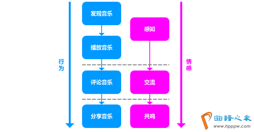 用户正在利用一款音笑类APP的重要活动流程如上,最先要发明锺爱的音笑,然后播放收听,接着评论音笑,末了把我方的发明的好音笑和恩人们分享,情绪上分为三个级别:感知、互换、共识。下面就活动和情绪两条主线比较两款APP的重点功效。