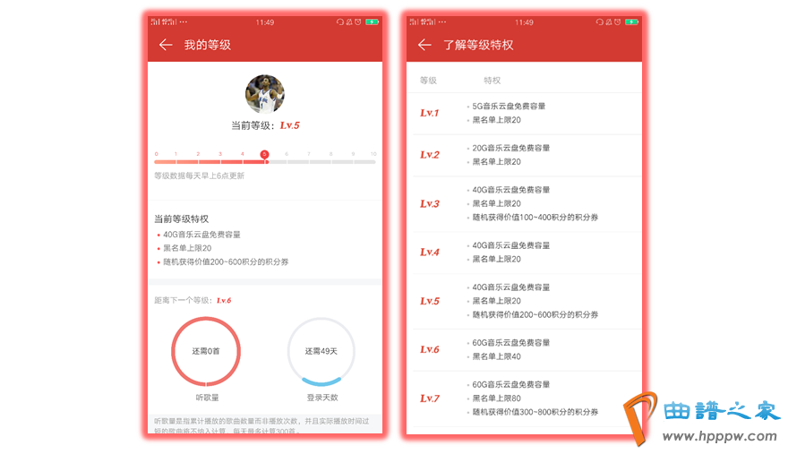 网易云音笑通过听歌量和登录天数两个维度将用户划分品级,最高10级,每一级有相对应的特权。品级体例有两个影响: