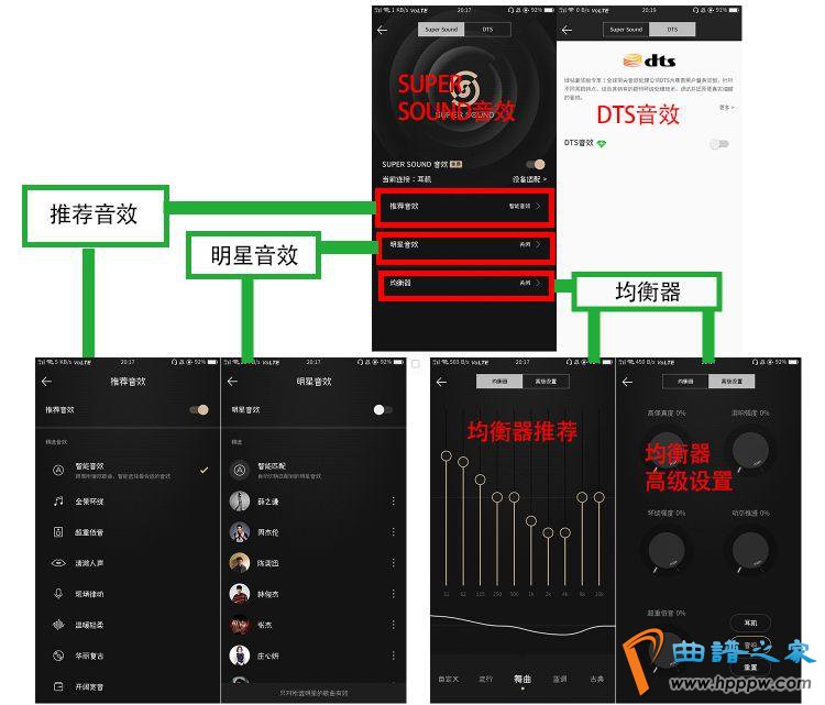 SUPER SOUND音效预设34种处境音效,适配百款耳机,为用户量身定做收听音质。同时也预设多种明星音效,以知足用户细听己方喜好的明星的音色格调。