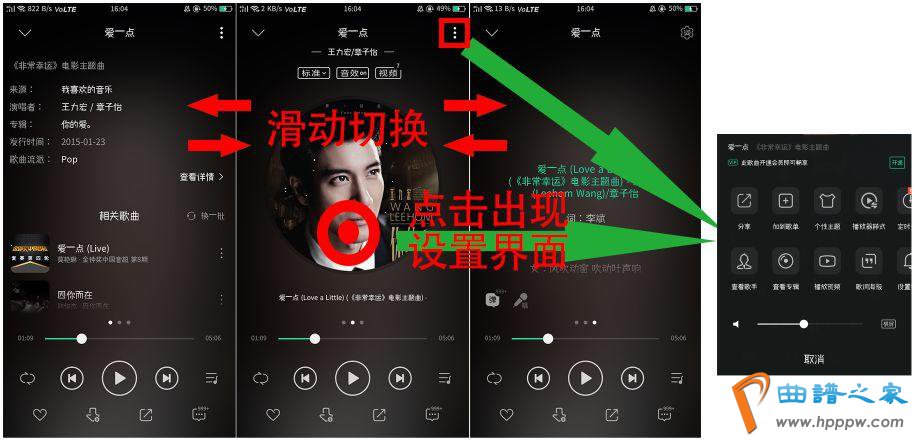 其它,页面是通过手指驾驭滑动切换的,这种切换体例比拟直接点击,填补了人体作为本钱,况且驾驭滑动很容易让人舛讹地联思成歌曲的上/下一曲切换,不太适当操作风气。