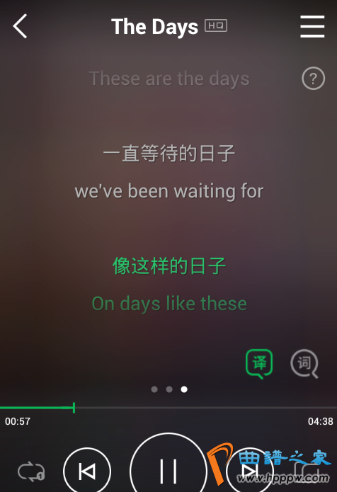 6。可是,有了歌词音译功效之后,咱们就能够看懂歌词的大意和歌者的心意了。歌词界面的右下角有【音】和【译】按钮,用户们能够翻开或者闭塞这些功效。