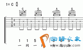 3。扫弦节拍记谱:谱上方有一个幼方格或是写着和弦名称,正在六条线上画“↑”、“↓”等符号。【谱上的和弦是你左手要按的,“↑”、“↓”流露扫弦倾向】