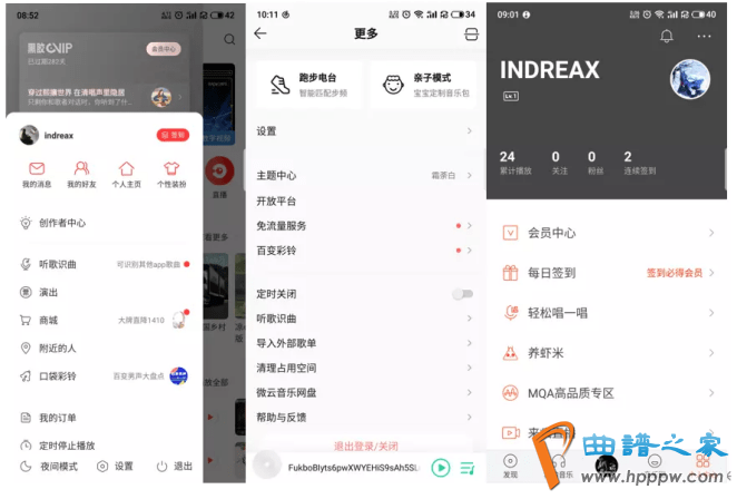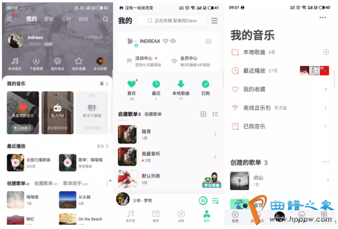 总结:具体来看,虾米音笑较其他两款则显得简约、明净,加之白色的主调色以及较大的字体使得页面更富足品德感。则别的网易云音笑正在我的页面涌现个体配景,表现了强社交链的特质。