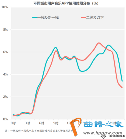 图5为Fastdata数据核心统计的正在线音笑分歧都会用户音笑APP行使时段的分散环境。数据显示,一线及新一线和二线及以下都会的用户行使时段存正在一面巧合。但也有所分歧,一线及以上都会的用户更多正在上放工的途入选择行使正在线音笑,即收听顶峰为早上八点和黑夜七点摆布,每天总共行使年光不跨越4个幼时。而二线及以下的都会用户全天都可能自正在行使正在线音笑。