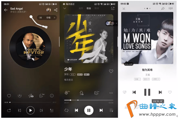 所有页面元素都相比拟较大号,是所有页面比力满感想,采用了当下万分时兴的全屏和毛玻璃效率,营造浸醉感,该当是探讨到照应整年龄段的用户,尽量让产物更易用。况且一个页面还不足,要分三个摆布滑,没主意,效用太多。查看歌词的交互也是阻挡易。从图标巨细陈列的比拟不难呈现,QQ 音笑仍旧盼望用户己听歌为首要宗旨的。