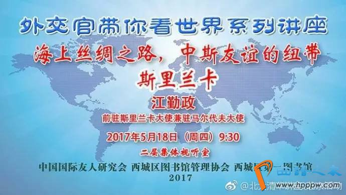 2017年5月18日(周四)9!30【嘉宾】江勤政(前驻斯里兰卡大使兼驻马尔代夫大使)【处所】北京西城区第一藏书楼二层整体视听室【报名连结】