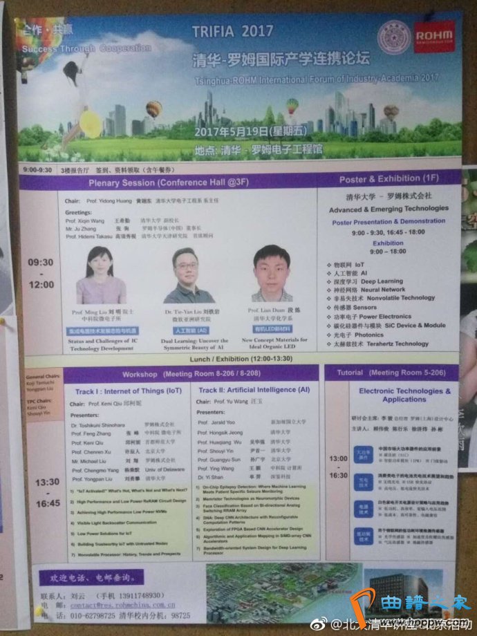 2017年5月19日(周五)9:30-18:00【嘉宾】刘明(中科院微电子所院士)等可见图【处所】清华大学罗姆电子工程馆【注】供应午餐,勾当日程可见图