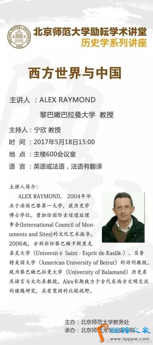【西方宇宙与中国】2017年5月18日(周四)15!00【主讲人】ALEX RAYMOND,黎巴嫩巴拉曼大学教育 主办人:宁欣教育【处所】北京师范大学主楼600聚会室