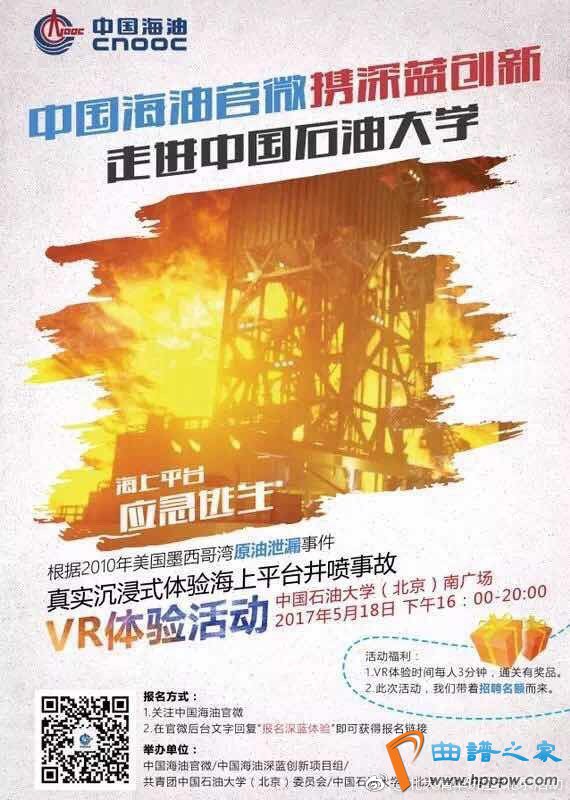 【中海油进行海上平台应急逃生VR体验勾当】2017年5月18日(周四)16!00-18!00【处所】中国石油大学南广场【报名】1。眷注中国海油官微;官微后台文字复兴“报名深蓝体验”即可得回报名链接【注】VR体验时代每人三分钟,通闭有奖品;此次勾当,带着任用名额而来