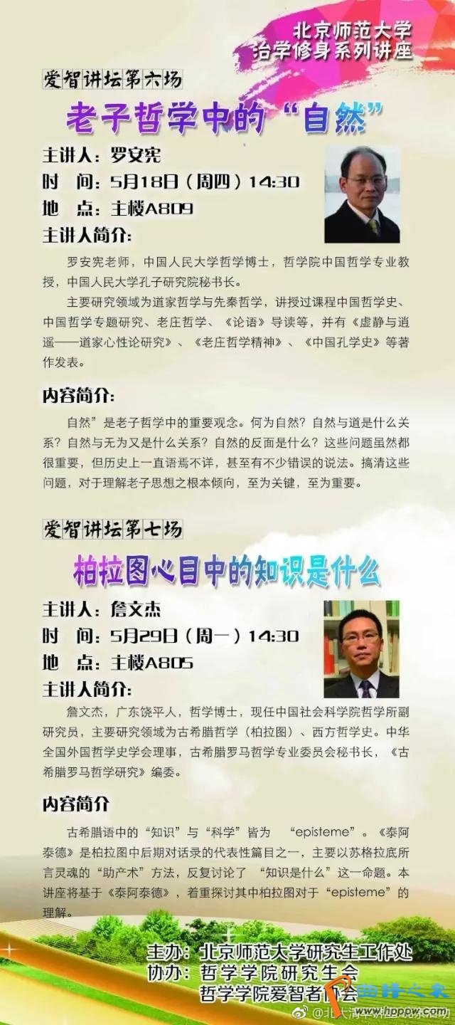 【老子玄学中的“天然”】2017年5月18日(周四)14!30【主讲人】罗安宪教师,中国百姓大学玄学博士,中国百姓大学孔子钻探院秘书长【处所】北京师范大学主楼A809