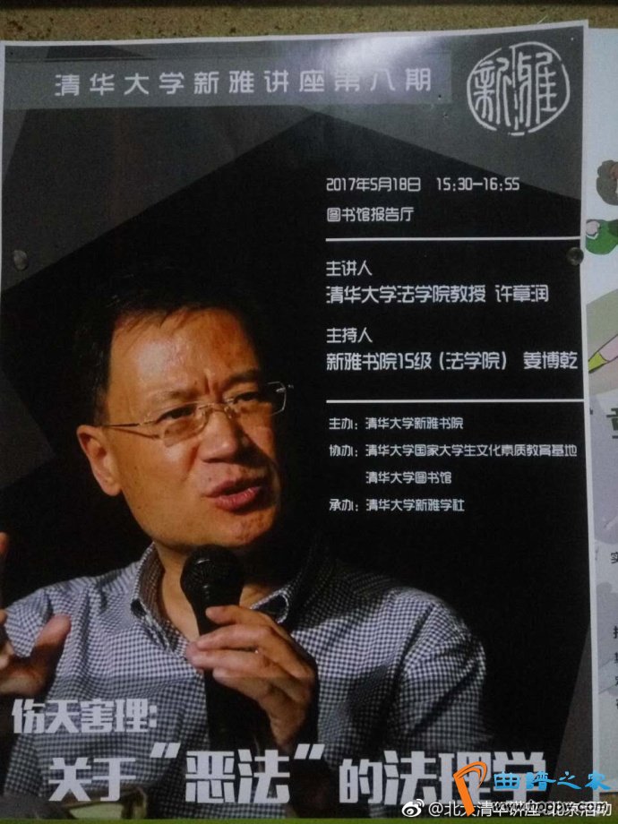 【清华新雅讲座第八期——伤天害理:闭于“恶法”的法理学】2017年5月18日(周四)15:30-16:55【主讲】许章润(清华大学法学院教育)【主办】姜博乾(新雅书院15级)【处所】清华大学藏书楼告诉厅