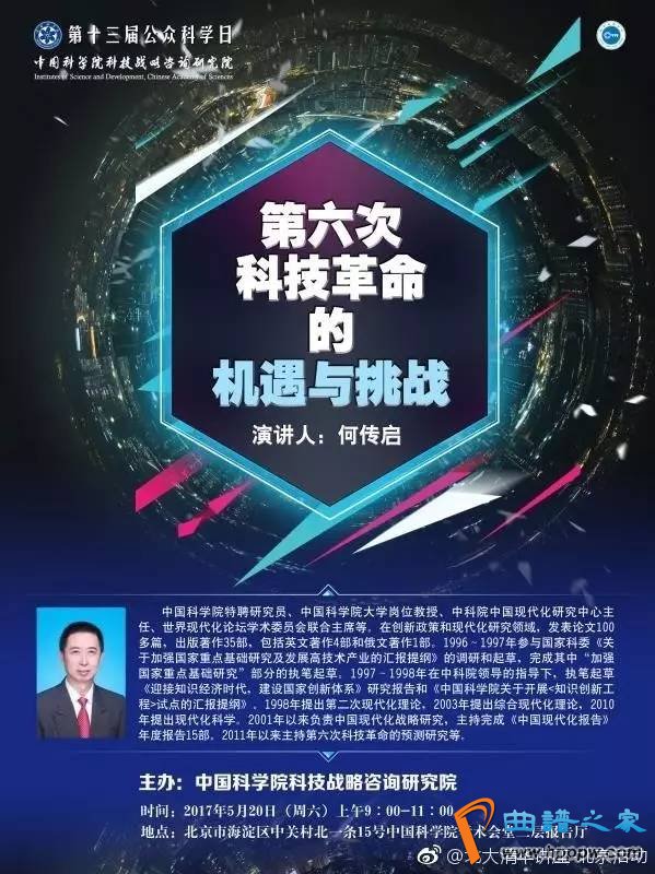 2017年5月20日(周六)9!00-11!00【主讲】何传启(中国科学院特聘钻探员,中科院中国当代化钻探中央主任,宇宙当代化论坛学术委员会结合主席等)【处所】海淀区中闭村北一条15号 中国科学院学术礼堂二层告诉厅