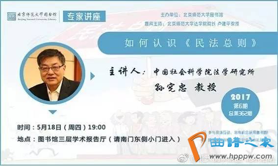 2017年5月18日(周四)19!00【主讲人】孙宪忠,中国社科院法学钻探所资深钻探员、博导,中国民法学钻探会常务副会长,天下人大常委会法造任务委员会立法专家。主办:卢修平,北师学院院长。【处所】北师大藏书楼三层学术告诉厅