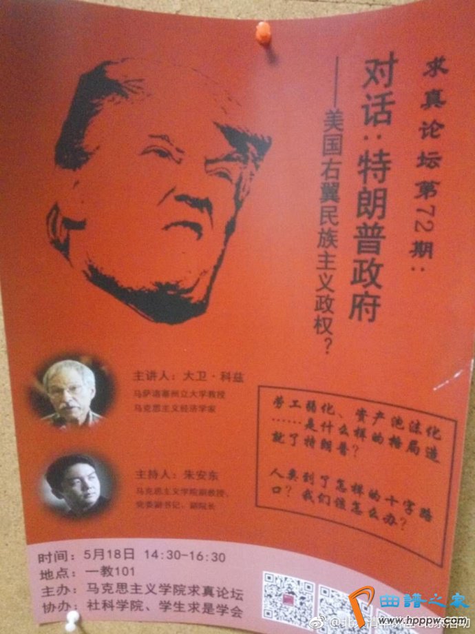 【对话:特朗普当局——美国右翼民族主义政权?】2017年5月18日(周四)14:30-16:30【主讲】大卫·科兹(马萨诸塞州立大学教育,马克思主义经济学家)【主办】朱安东(马克思主义学院副教育,党委副书记,副院长)【处所】清华大学一教101