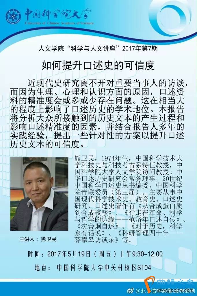 2017年5月19日(周五)9!30-12!00【主讲】熊卫民(中国科学本事大学科技史与科技考古系特任教育,20世纪中国科学口述史丛书编委)【处所】中国科学院大学中闭村校区S104