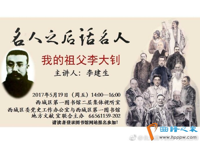2017年5月19日(周五)14!00 - 16!00【主讲人】李修生(李大钊之孙,现中国化工轻工物资贯通协会秘书长)【处所】西城区第一藏书楼二层整体视听室【报名链接】