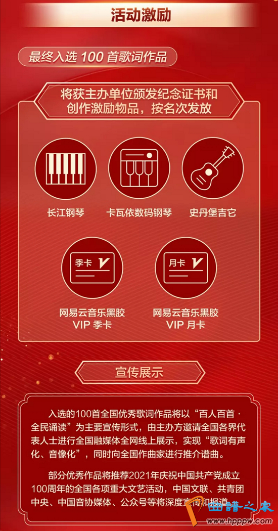 7月1日,正值中国建立99周年之际,中国文联、共青团中间、中国音协合伙主办“心中的歌”——祝贺中国建立100周年世界精良歌词搜集举止正式启动,网易云音笑举动合营音笑平台同步上线搜集渠道,邀请世界黎民用最懂得的文字,谱写新时间的感人旋律。