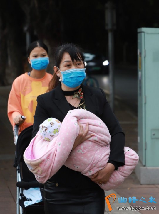市民出门给孩子裹上厚厚的被子。