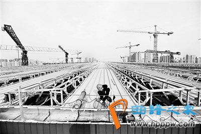 近日,北京青年报记者来到丰台火车站改建工程现场。塔吊林立,电焊闪烁,基坑里、钢架上、吊臂下,到处都是工人们忙碌的身影。在这里,每天共有3000多名建设者奋战一线。一期工程北区主体结构已完工,正进行金属屋面和采光窗安装施工;一期工程南区和二期工程地基基础及主体结构还正在加紧施工中。目前,站房主体结构完成75%,预计6月份主体结构封顶,年底实现开通运营。