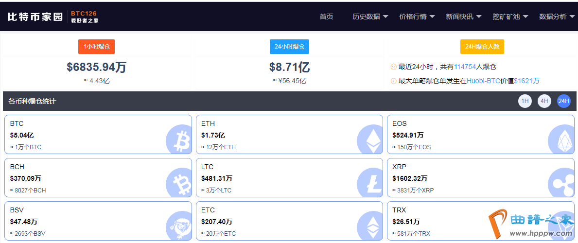 伴随着比特币来回震荡,据比特币家园网交易数据显示,比特币24小时爆仓资金达8.71亿美元(约合人民币56.45亿元),爆仓投资者114754人。