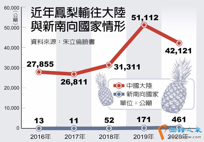 近年凤梨输往大陆与新南向国家情形