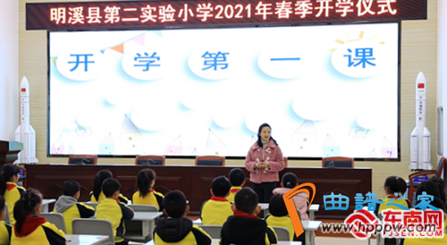 明溪县第二实验小学线上直播开学。明溪县融媒体中心供图