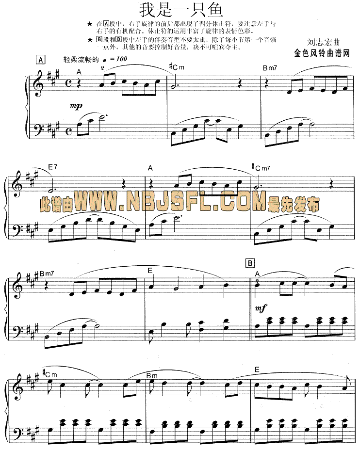 《我是一只鱼》简谱 任贤齐 点这里