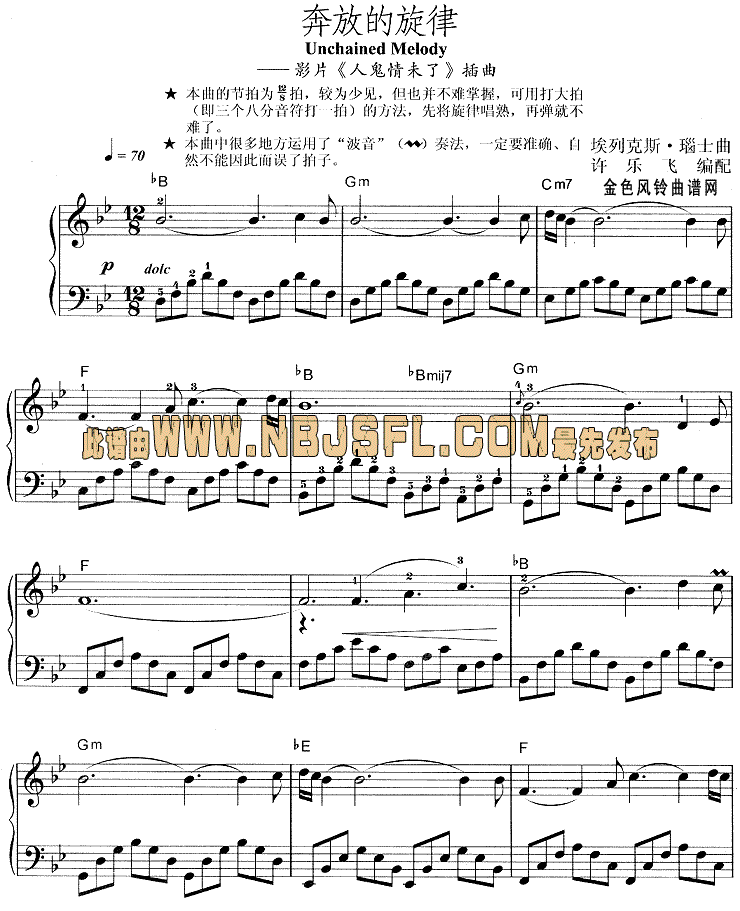 《unchained melody(奔放的旋律(《人鬼情未了》插曲)》电子琴谱