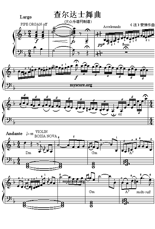《查尔达士舞曲 (上)》电子琴谱 未知