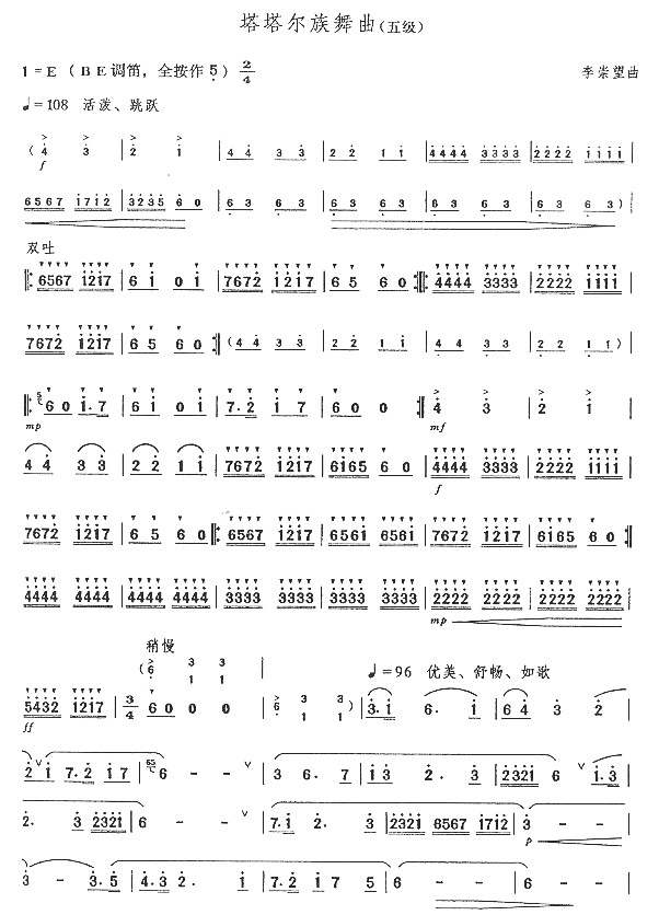 《塔塔尔族舞曲(五级)》笛萧谱 未知