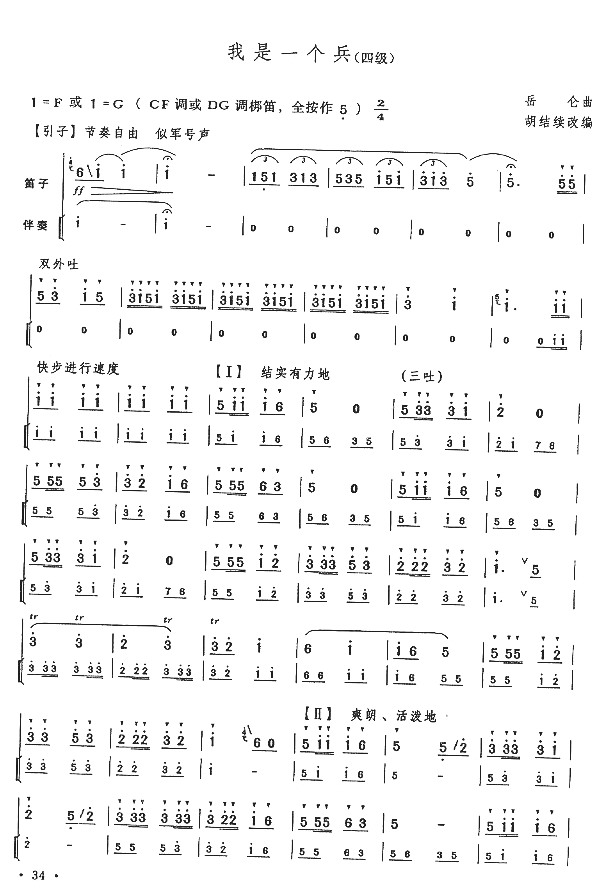 《我是一个兵(四级)》笛萧谱 未知