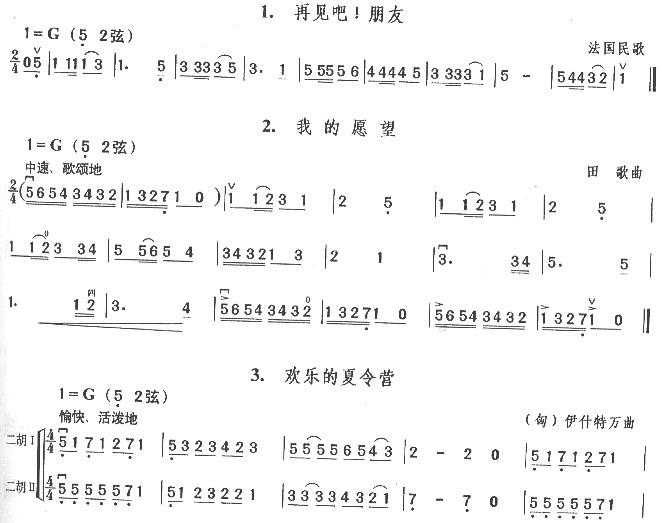 《再见吧!朋友.我的愿望.欢乐夏令营》二胡谱 未知