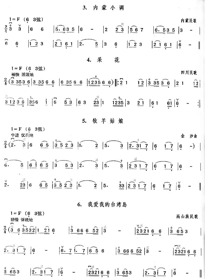 《内蒙小调.采花.牧羊姑娘.我爱我的台湾岛》二胡谱 未知
